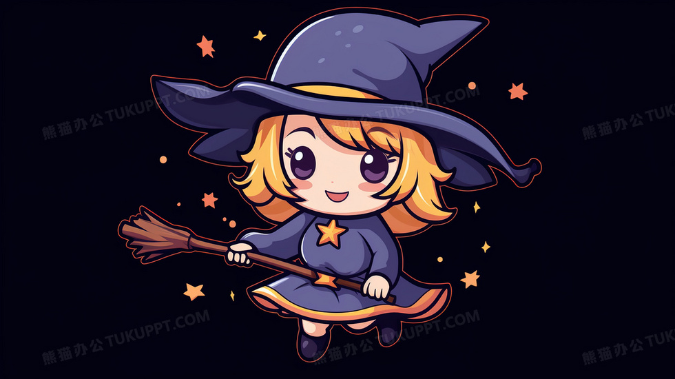 本作品内容为一个年轻的卡通女巫坐着扫把插画, 格式为 jpg, 大小4 MB, 图片尺寸为2912 x 1632, 源文件无水印, 欢迎使用熊猫办公。 如认为平台内容涉嫌侵权,可通过邮件:tousu@tukuppt.com提出书面通知,我们将及时处理。