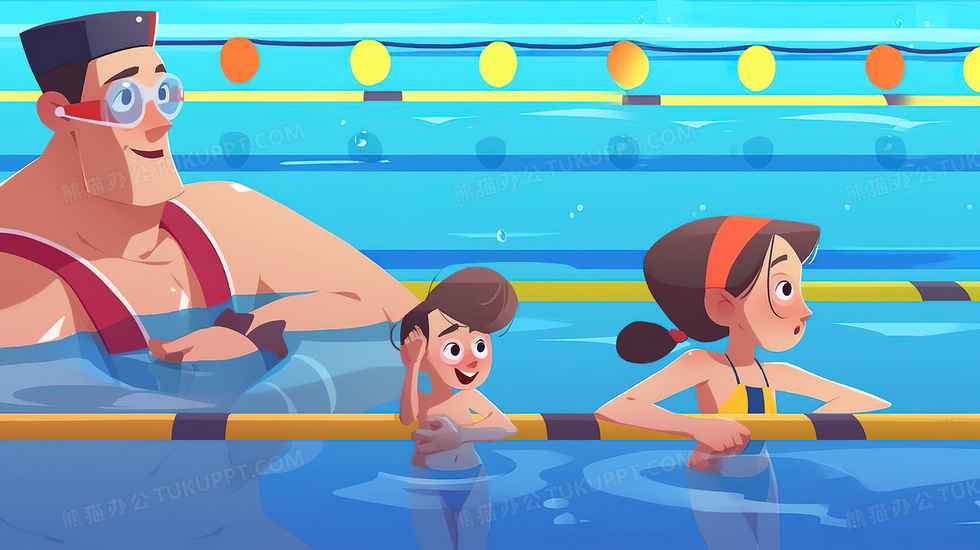 本作品内容为夏天孩子们认真的和教练学习游泳创意插画, 格式为 jpg, 大小5 MB, 图片尺寸为2912 x 1632, 源文件无水印, 欢迎使用熊猫办公。 如认为平台内容涉嫌侵权,可通过邮件:tousu@tukuppt.com提出书面通知,我们将及时处理。