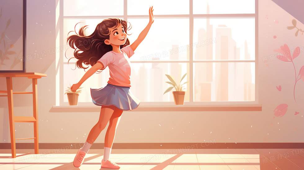 本作品内容为可爱的小女孩在练习舞蹈创意插画, 格式为 jpg, 大小4 MB, 图片尺寸为2912 x 1632, 源文件无水印, 欢迎使用熊猫办公。 如认为平台内容涉嫌侵权,可通过邮件:tousu@tukuppt.com提出书面通知,我们将及时处理。