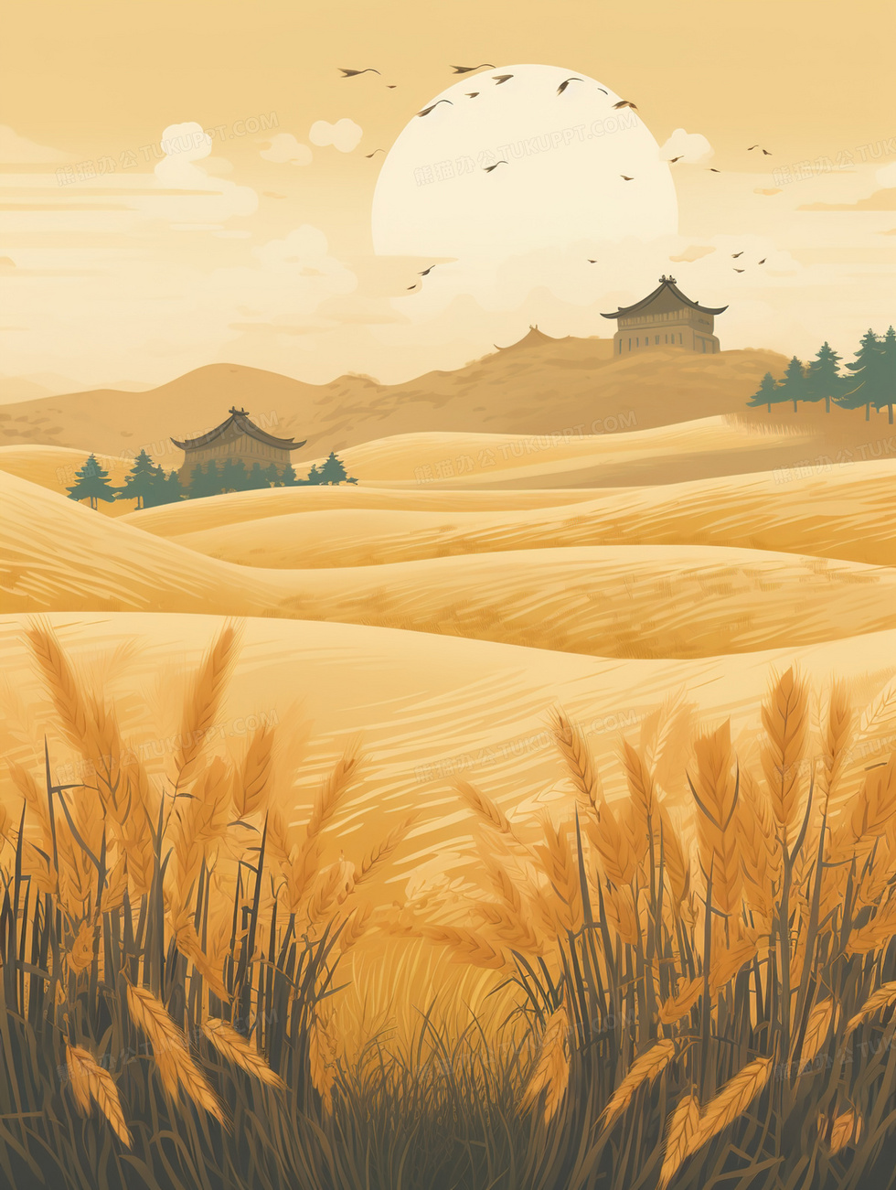 本作品内容为金色小麦丰收的季节芒种节气插画, 格式为 jpg, 大小5 MB, 图片尺寸为1856 x 2464, 源文件无水印, 欢迎使用熊猫办公。 如认为平台内容涉嫌侵权,可通过邮件:tousu@tukuppt.com提出书面通知,我们将及时处理。