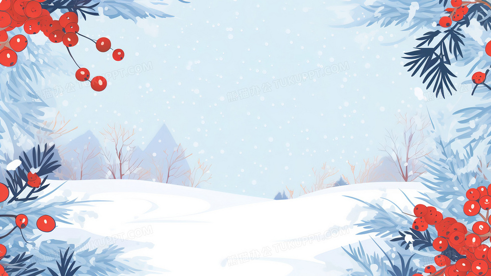 本作品内容为圣诞果子装饰大雪纷飞的冬日山景插画, 格式为 jpg, 大小4 MB, 图片尺寸为2912 x 1632, 源文件无水印, 欢迎使用熊猫办公。 如认为平台内容涉嫌侵权,可通过邮件:tousu@tukuppt.com提出书面通知,我们将及时处理。