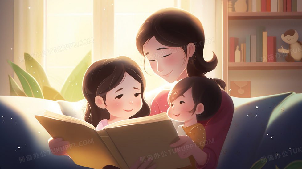 本作品内容为妈妈给孩子讲故事温馨插画, 格式为 jpg, 大小4 MB, 图片尺寸为2912 x 1632, 源文件无水印, 欢迎使用熊猫办公。 如认为平台内容涉嫌侵权,可通过邮件:tousu@tukuppt.com提出书面通知,我们将及时处理。