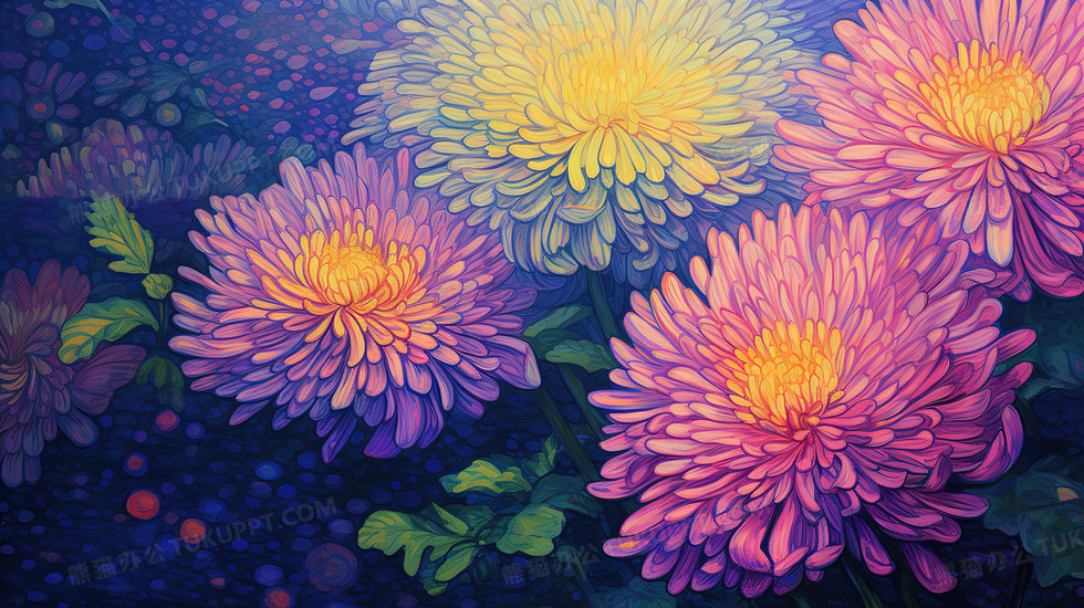 本作品内容为秋天盛开的菊花插画, 格式为 jpg, 大小8 MB, 图片尺寸为2912 x 1632, 源文件无水印, 欢迎使用熊猫办公。 如认为平台内容涉嫌侵权,可通过邮件:tousu@tukuppt.com提出书面通知,我们将及时处理。