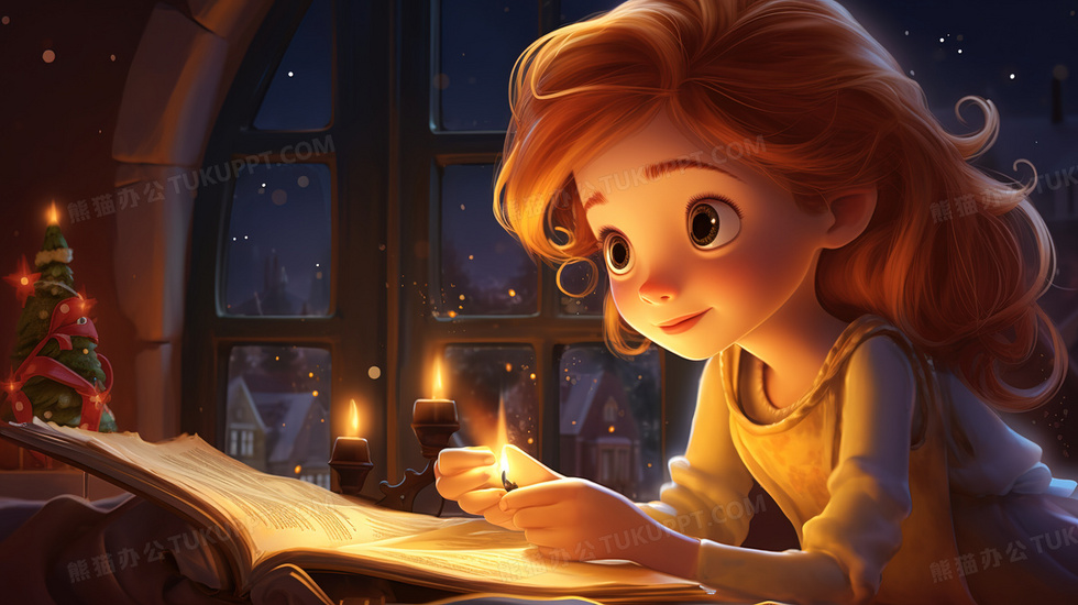 本作品内容为烛光里读书的儿童插画, 格式为 jpg, 大小5 MB, 图片尺寸为2912 x 1632, 源文件无水印, 欢迎使用熊猫办公。 如认为平台内容涉嫌侵权,可通过邮件:tousu@tukuppt.com提出书面通知,我们将及时处理。