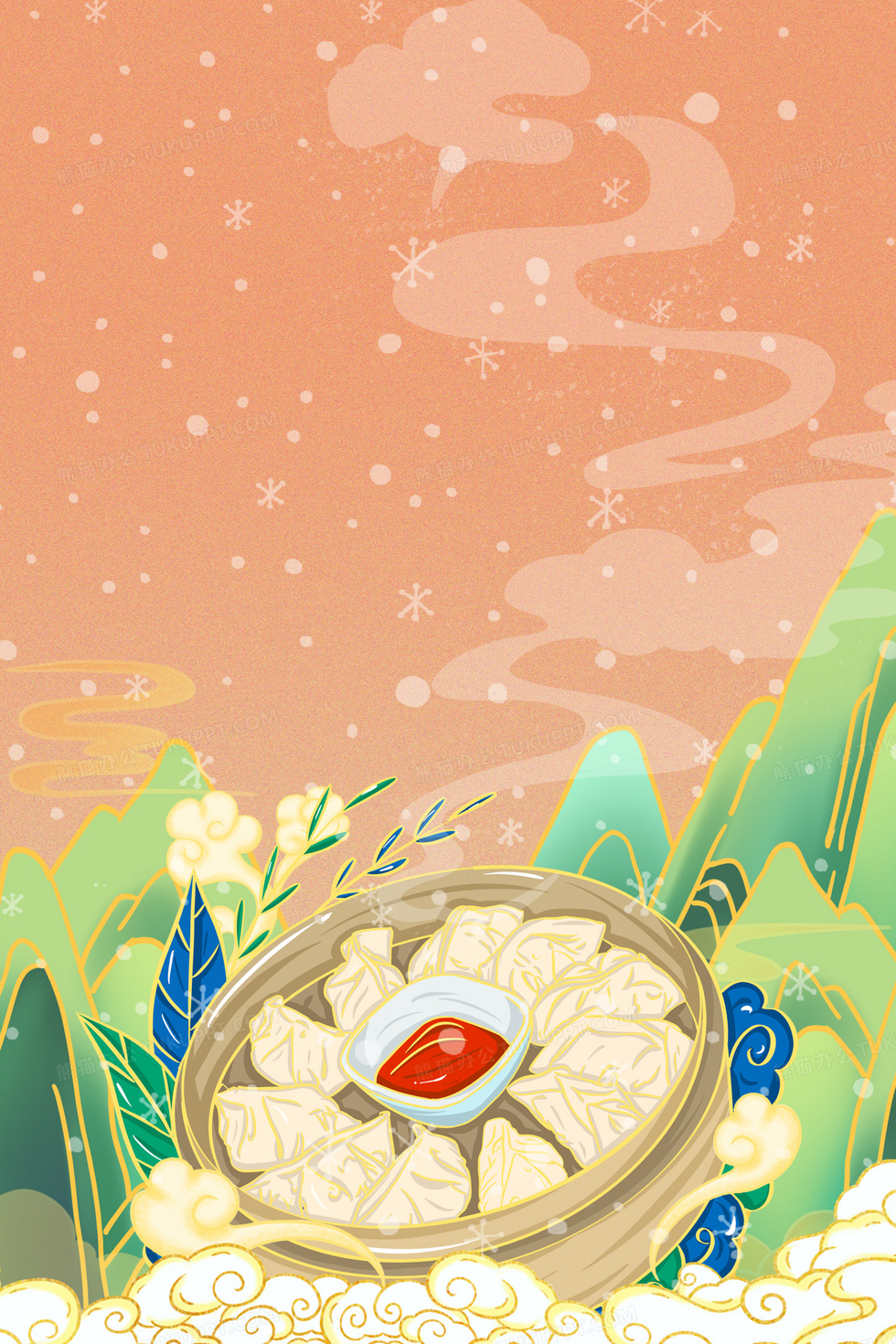 本作品内容为国潮饺子合成背景, 格式为 psd, 大小107 MB, 图片尺寸为3543 x 5314, 作品中背景图片无需修改, 源文件无水印,可以直接使用, 欢迎使用熊猫办公。 如认为平台内容涉嫌侵权,可通过邮件:tousu@tukuppt.com提出书面通知,我们将及时处理。