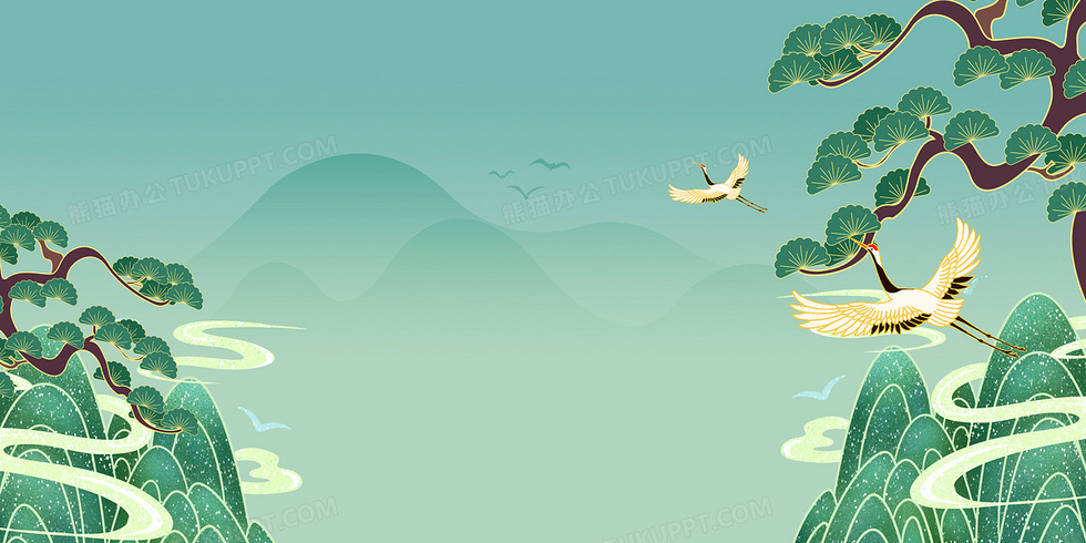 本作品内容为国潮风格松柏松树古风背景, 格式为 psd, 大小30 MB, 图片尺寸为4722 x 2361, 作品中背景图片无需修改, 源文件无水印,可以直接使用, 欢迎使用熊猫办公。 如认为平台内容涉嫌侵权,可通过邮件:tousu@tukuppt.com提出书面通知,我们将及时处理。