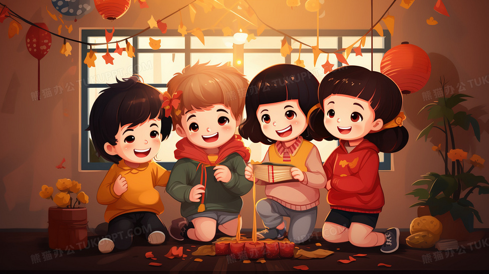本作品内容为男孩女孩一起庆祝中国新年插画, 格式为 jpg, 大小5 MB, 图片尺寸为2912 x 1632, 源文件无水印, 欢迎使用熊猫办公。 如认为平台内容涉嫌侵权,可通过邮件:tousu@tukuppt.com提出书面通知,我们将及时处理。
