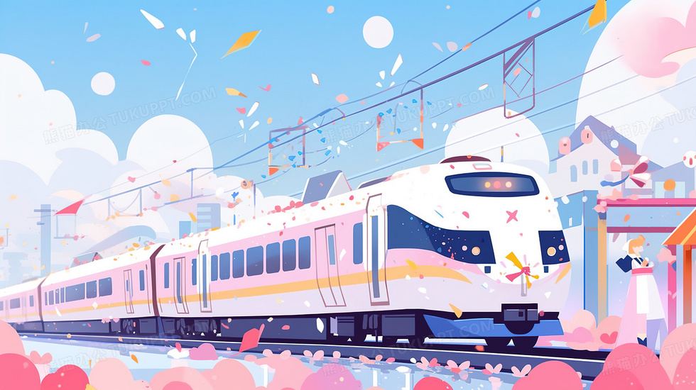 本作品内容为铁道上行驶的高铁插画, 格式为 jpg, 大小5 MB, 图片尺寸为2912 x 1632, 源文件无水印, 欢迎使用熊猫办公。 如认为平台内容涉嫌侵权,可通过邮件:tousu@tukuppt.com提出书面通知,我们将及时处理。