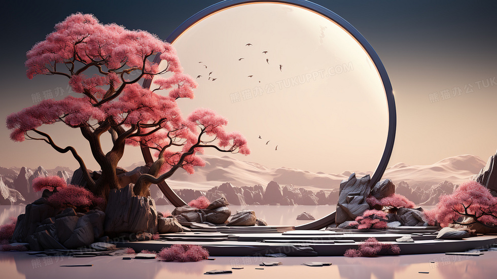 本作品内容为C4D粉梅山水古典电商展示台概念图片, 格式为 jpg, 大小7 MB, 图片尺寸为2912 x 1632, 源文件无水印, 欢迎使用熊猫办公。 如认为平台内容涉嫌侵权,可通过邮件:tousu@tukuppt.com提出书面通知,我们将及时处理。