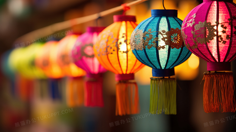 本作品内容为彩色新年中式花灯灯笼插画, 格式为 jpg, 大小5 MB, 图片尺寸为2912 x 1632, 源文件无水印, 欢迎使用熊猫办公。 如认为平台内容涉嫌侵权,可通过邮件:tousu@tukuppt.com提出书面通知,我们将及时处理。