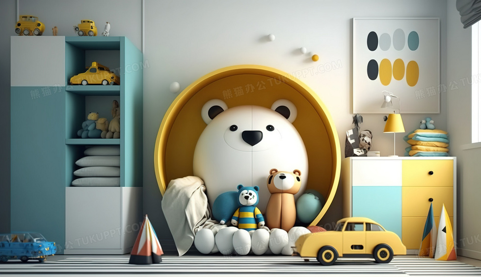 本作品内容为温馨玩具卡通儿童房装饰, 格式为 jpg, 大小5 MB, 图片尺寸为3328 x 1920, 源文件无水印, 欢迎使用熊猫办公。 如认为平台内容涉嫌侵权,可通过邮件:tousu@tukuppt.com提出书面通知,我们将及时处理。