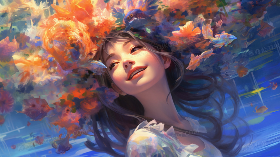 本作品内容为彩色卡通手绘唯美水中女孩, 格式为 jpg, 大小5 MB, 图片尺寸为2912 x 1632, 源文件无水印, 欢迎使用熊猫办公。 如认为平台内容涉嫌侵权,可通过邮件:tousu@tukuppt.com提出书面通知,我们将及时处理。