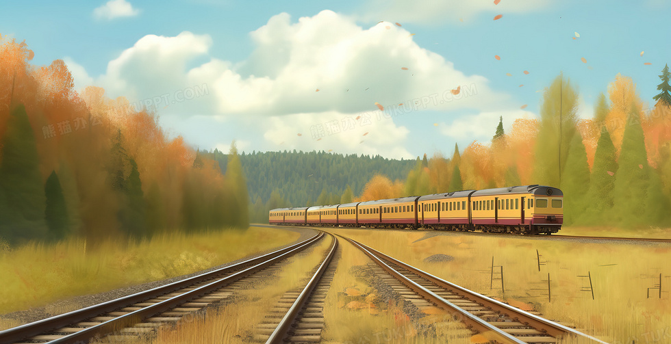 本作品内容为唯美清新秋日草原上的火车创意插画, 格式为 jpg, 大小6 MB, 图片尺寸为2912 x 1494, 源文件无水印, 欢迎使用熊猫办公。 如认为平台内容涉嫌侵权,可通过邮件:tousu@tukuppt.com提出书面通知,我们将及时处理。