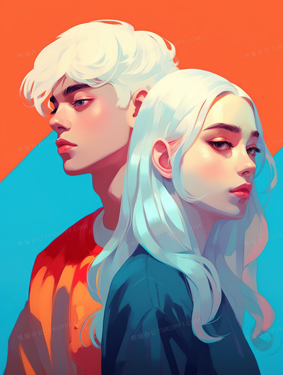 本作品内容为时尚潮流情侣插画, 格式为 jpg, 大小5 MB, 图片尺寸为1856 x 2464, 源文件无水印, 欢迎使用熊猫办公。 如认为平台内容涉嫌侵权,可通过邮件:tousu@tukuppt.com提出书面通知,我们将及时处理。