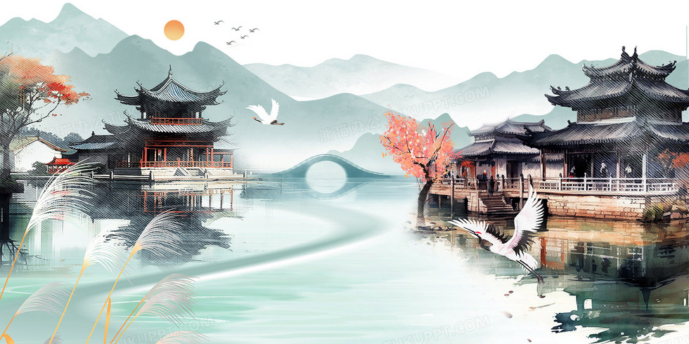 本作品内容为古风亭台楼阁山水背景, 格式为 psd, 大小103 MB, 图片尺寸为4722 x 2361, 作品中背景图片无需修改, 源文件无水印,可以直接使用, 欢迎使用熊猫办公。 如认为平台内容涉嫌侵权,可通过邮件:tousu@tukuppt.com提出书面通知,我们将及时处理。