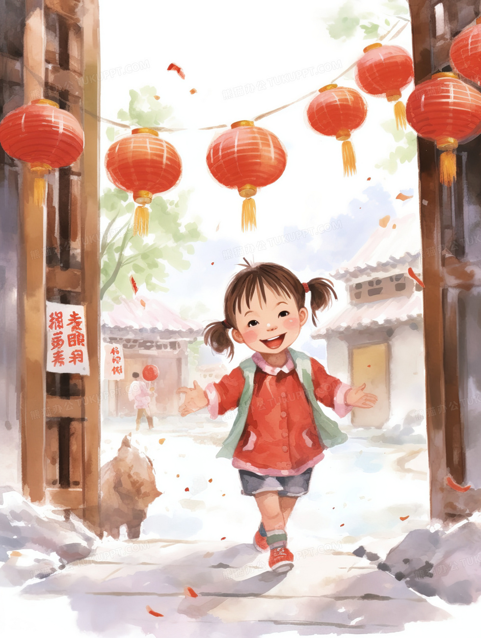 首页 > 插画 > 科技艺术 > 水彩手绘 > 在老家过年快乐玩耍的小女孩插画