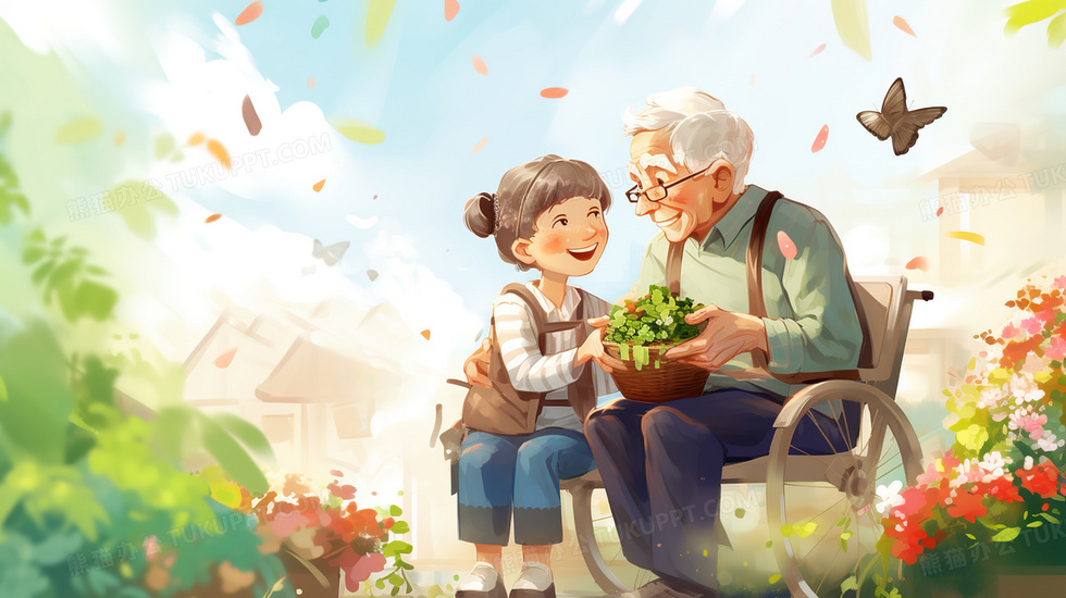 本作品内容为小女孩陪伴坐轮椅的白发老人温馨插画, 格式为 jpg, 大小5 MB, 图片尺寸为2912 x 1632, 源文件无水印, 欢迎使用熊猫办公。 如认为平台内容涉嫌侵权,可通过邮件:tousu@tukuppt.com提出书面通知,我们将及时处理。