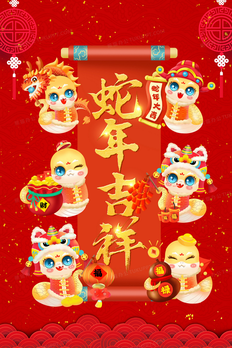 本作品内容为2025春节蛇年吉祥插画, 格式为 psd, 大小154 MB, 请使用软件PhotoShop(CC)打开, 源文件无水印, 欢迎使用熊猫办公。 如认为平台内容涉嫌侵权,可通过邮件:tousu@tukuppt.com提出书面通知,我们将及时处理。