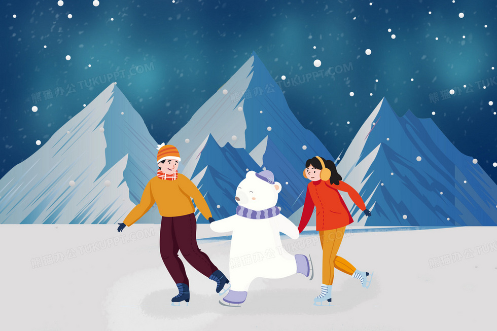 本作品内容为男孩女孩与白熊滑冰插画, 格式为 psd, 大小8 MB, 请使用软件PhotoShop(CC)打开, 源文件无水印, 欢迎使用熊猫办公。 如认为平台内容涉嫌侵权,可通过邮件:tousu@tukuppt.com提出书面通知,我们将及时处理。