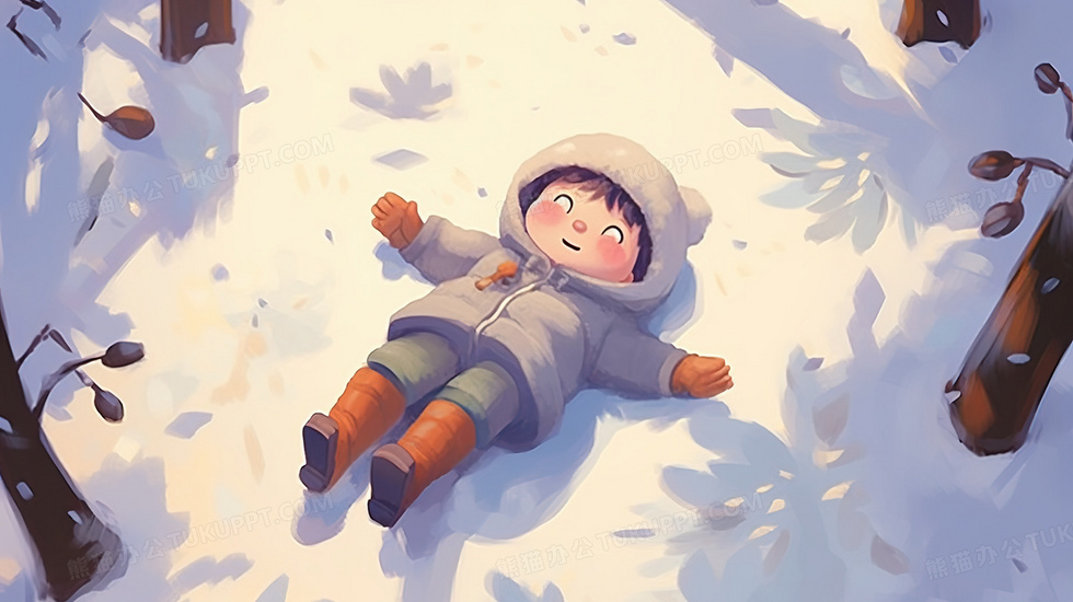 本作品内容为冬天躺在雪地上玩耍的男孩插画, 格式为 jpg, 大小4 MB, 图片尺寸为2912 x 1632, 源文件无水印, 欢迎使用熊猫办公。 如认为平台内容涉嫌侵权,可通过邮件:tousu@tukuppt.com提出书面通知,我们将及时处理。