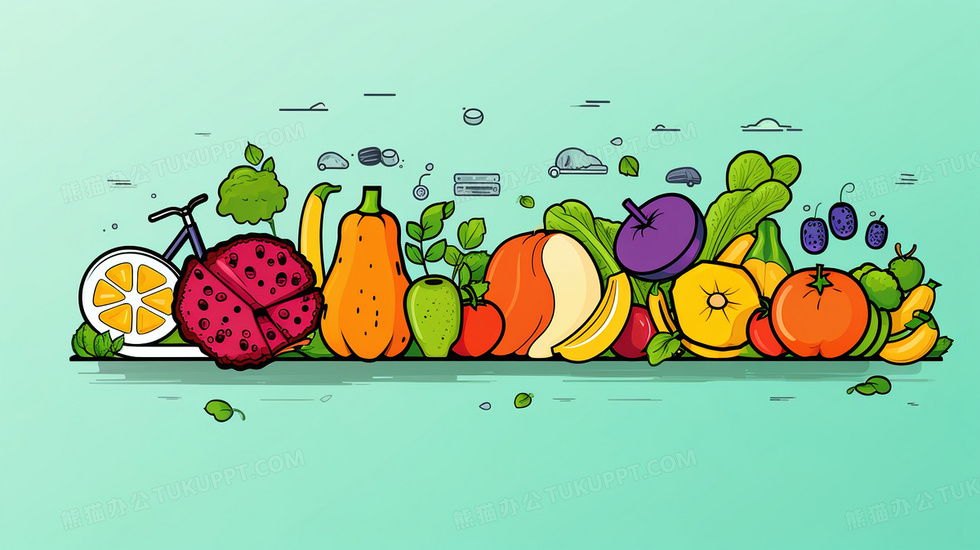 本作品内容为绿色蔬菜水果美食插画, 格式为 jpg, 大小4 MB, 图片尺寸为2912 x 1632, 源文件无水印, 欢迎使用熊猫办公。 如认为平台内容涉嫌侵权,可通过邮件:tousu@tukuppt.com提出书面通知,我们将及时处理。