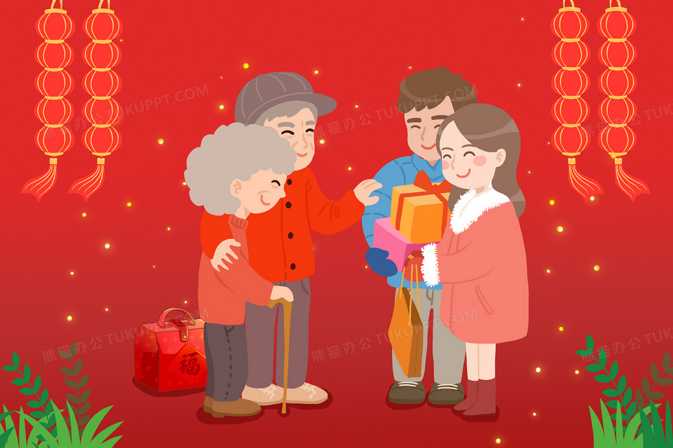 本作品内容为 小两口新年回家拜年红色喜庆插画, 格式为 psd, 大小13 MB, 请使用软件PhotoShop(CS6)打开, 源文件无水印, 欢迎使用熊猫办公。 如认为平台内容涉嫌侵权,可通过邮件:tousu@tukuppt.com提出书面通知,我们将及时处理。