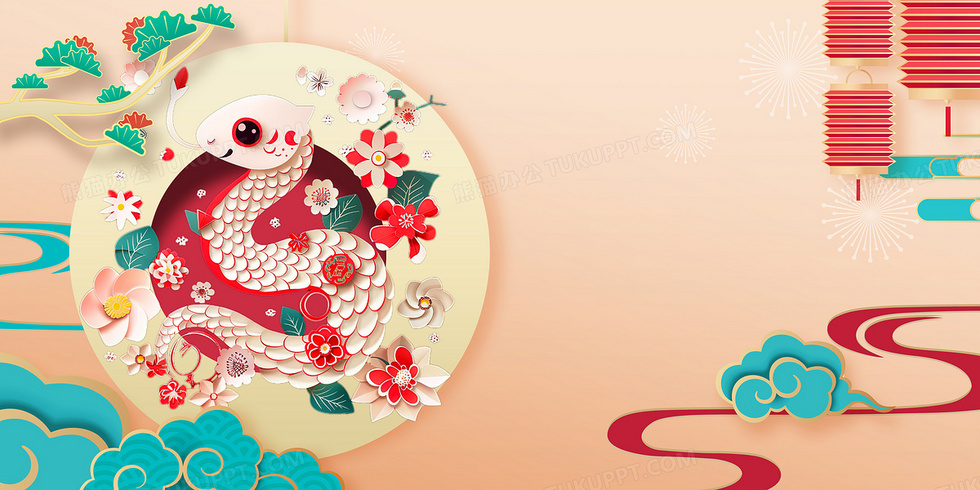 本作品内容为2025蛇年立体蛇剪纸中国风新年背景, 格式为 psd, 大小26 MB, 图片尺寸为4724 x 2362, 作品中背景图片无需修改, 源文件无水印,可以直接使用, 欢迎使用熊猫办公。 如认为平台内容涉嫌侵权,可通过邮件:tousu@tukuppt.com提出书面通知,我们将及时处理。