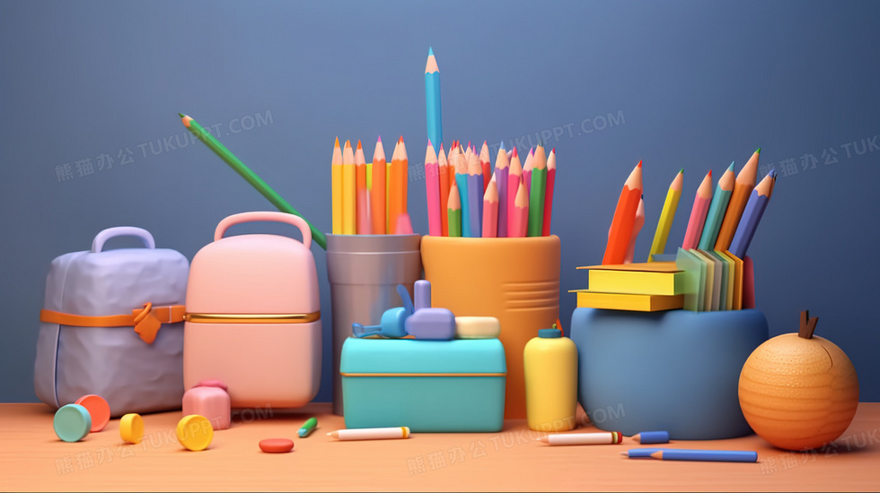 本作品内容为彩色3D立体卡通文具插画, 格式为 jpg, 大小4 MB, 图片尺寸为2912 x 1632, 源文件无水印, 欢迎使用熊猫办公。 如认为平台内容涉嫌侵权,可通过邮件:tousu@tukuppt.com提出书面通知,我们将及时处理。