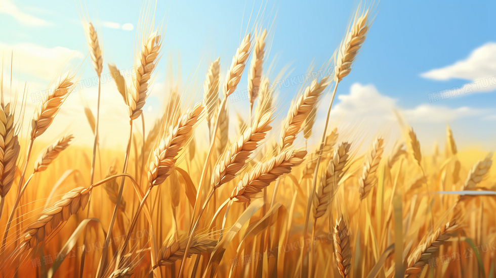 本作品内容为乡村金色田野上丰收的麦子风景插画, 格式为 jpg, 大小5 MB, 图片尺寸为2912 x 1632, 源文件无水印, 欢迎使用熊猫办公。 如认为平台内容涉嫌侵权,可通过邮件:tousu@tukuppt.com提出书面通知,我们将及时处理。