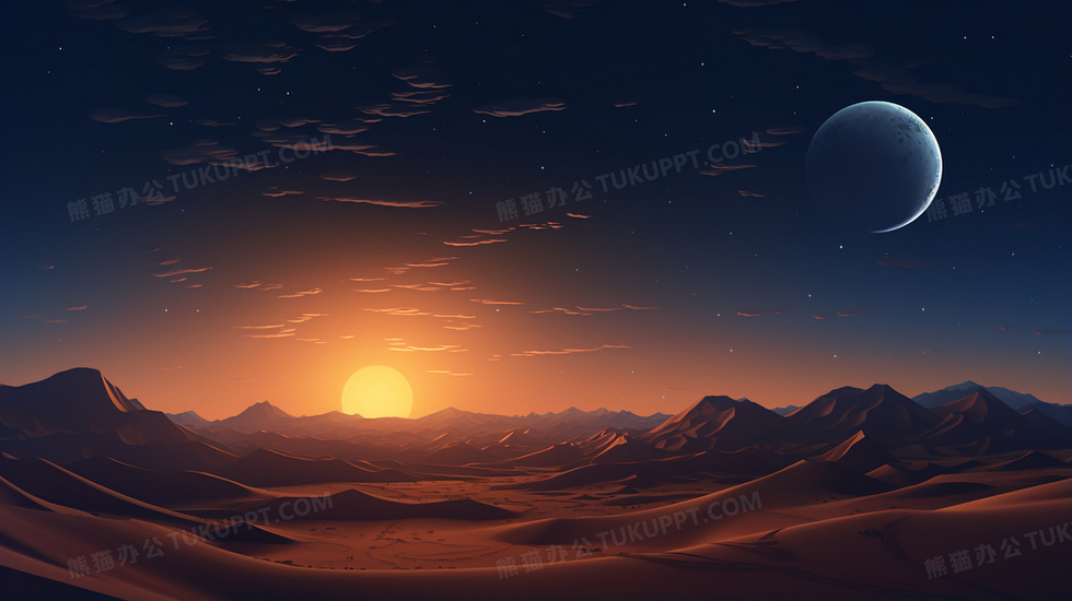 本作品内容为沙漠夜空风景插画, 格式为 jpg, 大小4 MB, 图片尺寸为2912 x 1632, 源文件无水印, 欢迎使用熊猫办公。 如认为平台内容涉嫌侵权,可通过邮件:tousu@tukuppt.com提出书面通知,我们将及时处理。
