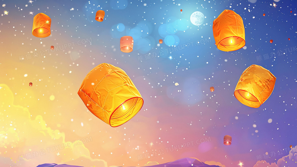 本作品内容为空中飘浮的祈福孔明灯插画, 格式为 jpg, 大小2 MB, 图片尺寸为2912 x 1632, 源文件无水印, 欢迎使用熊猫办公。 如认为平台内容涉嫌侵权,可通过邮件:tousu@tukuppt.com提出书面通知,我们将及时处理。