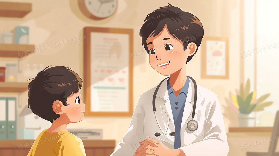 本作品内容为扁平风医生穿白大褂戴着听诊器给儿童看病插画, 格式为 jpg, 大小2 MB, 图片尺寸为2912 x 1632, 源文件无水印, 欢迎使用熊猫办公。 如认为平台内容涉嫌侵权,可通过邮件:tousu@tukuppt.com提出书面通知,我们将及时处理。