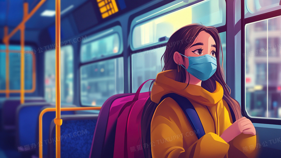 本作品内容为女孩公交车戴口罩生病预防肺炎插画, 格式为 jpg, 大小3 MB, 图片尺寸为2912 x 1632, 源文件无水印, 欢迎使用熊猫办公。 如认为平台内容涉嫌侵权,可通过邮件:tousu@tukuppt.com提出书面通知,我们将及时处理。