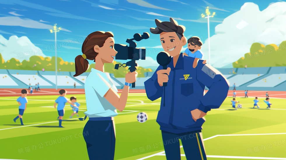 本作品内容为女记者现场报道足球体育赛事插画, 格式为 jpg, 大小2 MB, 图片尺寸为2912 x 1632, 源文件无水印, 欢迎使用熊猫办公。 如认为平台内容涉嫌侵权,可通过邮件:tousu@tukuppt.com提出书面通知,我们将及时处理。