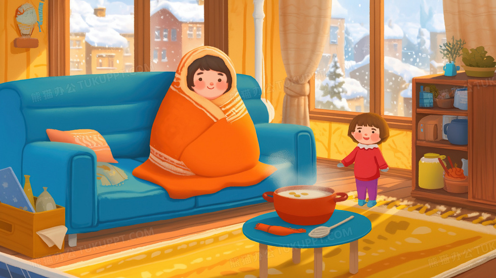 本作品内容为冬季宅家裹被子保暖的女孩插画, 格式为 jpg, 大小2 MB, 图片尺寸为2912 x 1632, 源文件无水印, 欢迎使用熊猫办公。 如认为平台内容涉嫌侵权,可通过邮件:tousu@tukuppt.com提出书面通知,我们将及时处理。