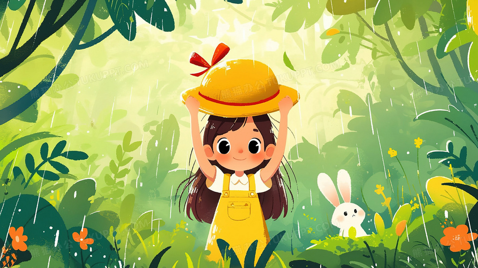 本作品内容为卡通森林里带着帽子的小女孩和小兔子插画, 格式为 jpg, 大小3 MB, 图片尺寸为2912 x 1632, 源文件无水印, 欢迎使用熊猫办公。 如认为平台内容涉嫌侵权,可通过邮件:tousu@tukuppt.com提出书面通知,我们将及时处理。