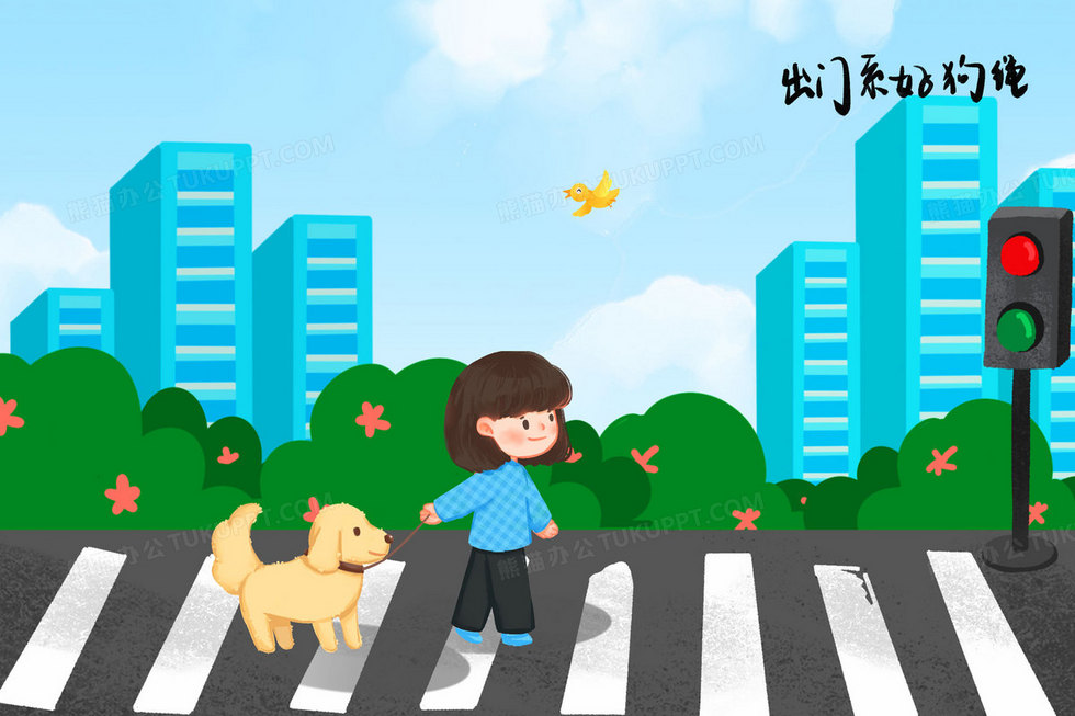 本作品内容为文明养犬之女孩出门牵狗绳过马路插画, 格式为 psd, 大小29 MB, 请使用软件PhotoShop(CS6)打开, 源文件无水印, 欢迎使用熊猫办公。 如认为平台内容涉嫌侵权,可通过邮件:tousu@tukuppt.com提出书面通知,我们将及时处理。