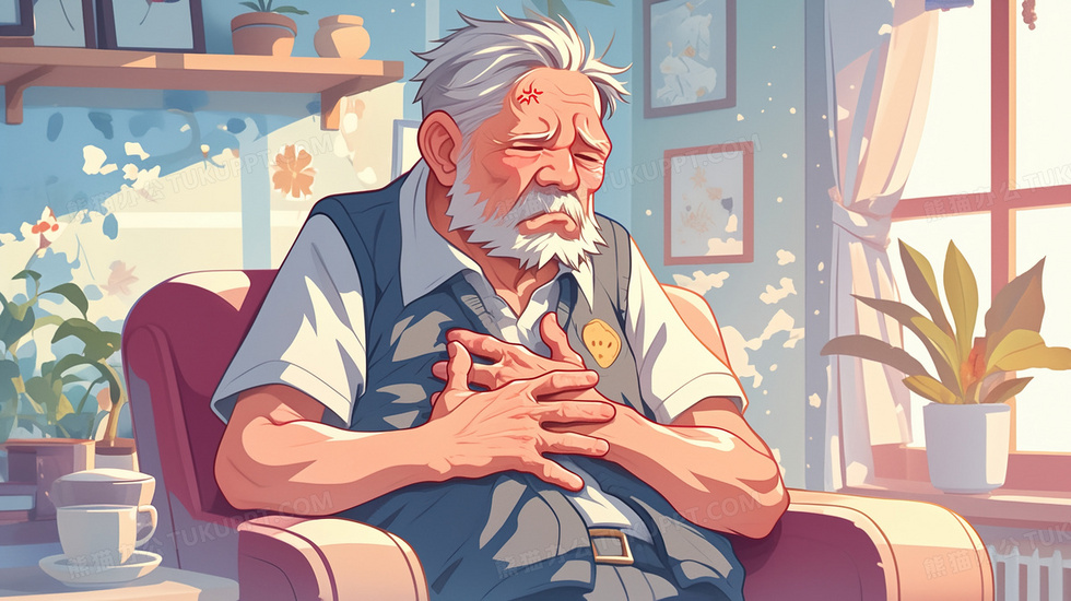 本作品内容为胸部疼痛心脏问题的老年人插画, 格式为 jpg, 大小2 MB, 图片尺寸为2912 x 1632, 源文件无水印, 欢迎使用熊猫办公。 如认为平台内容涉嫌侵权,可通过邮件:tousu@tukuppt.com提出书面通知,我们将及时处理。