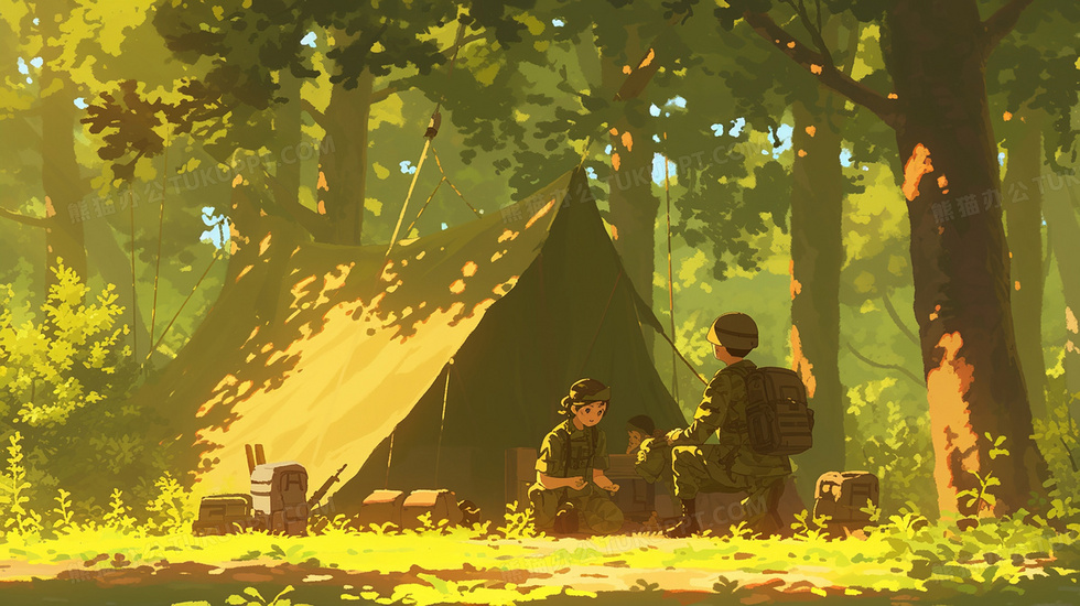 本作品内容为野外军事夏令营的青年人插画, 格式为 jpg, 大小3 MB, 图片尺寸为2912 x 1632, 源文件无水印, 欢迎使用熊猫办公。 如认为平台内容涉嫌侵权,可通过邮件:tousu@tukuppt.com提出书面通知,我们将及时处理。