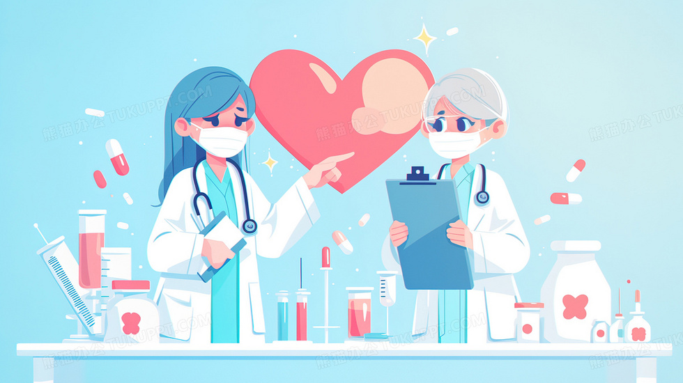 本作品内容为手拿病历本检查心脏的女医生插画, 格式为 jpg, 大小2 MB, 图片尺寸为2912 x 1632, 源文件无水印, 欢迎使用熊猫办公。 如认为平台内容涉嫌侵权,可通过邮件:tousu@tukuppt.com提出书面通知,我们将及时处理。