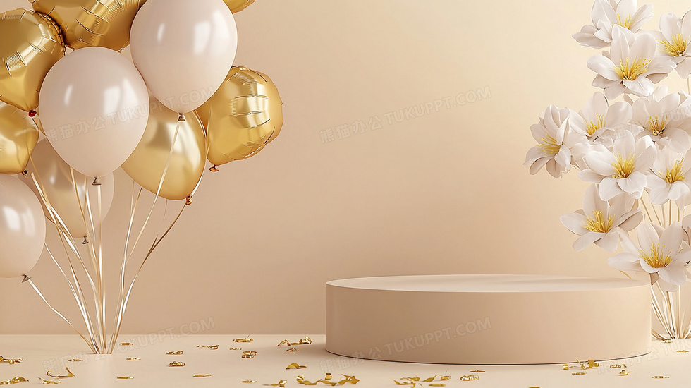 本作品内容为土豪金气球展台装饰背景, 格式为 jpg, 大小2 MB, 图片尺寸为2912 x 1632, 作品中背景图片无需修改, 源文件无水印,可以直接使用, 欢迎使用熊猫办公。 如认为平台内容涉嫌侵权,可通过邮件:tousu@tukuppt.com提出书面通知,我们将及时处理。