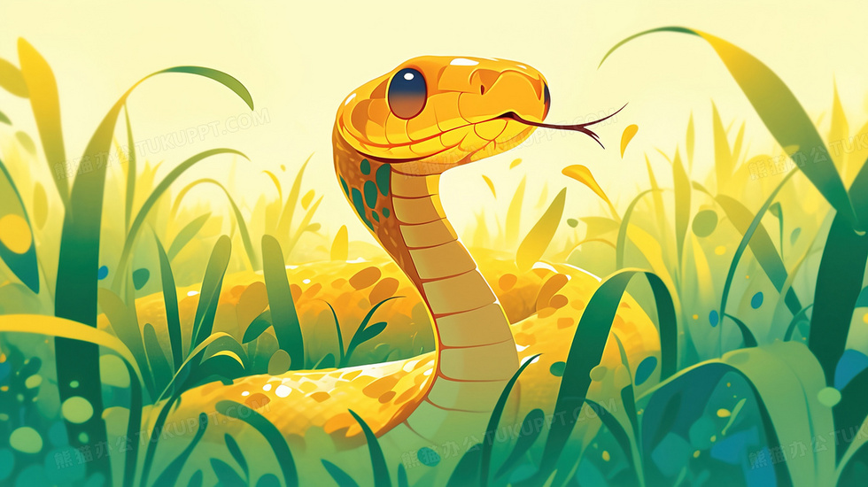 本作品内容为蛇年盘旋在草丛的可爱青蛇插画, 格式为 jpg, 大小2 MB, 图片尺寸为2912 x 1632, 源文件无水印, 欢迎使用熊猫办公。 如认为平台内容涉嫌侵权,可通过邮件:tousu@tukuppt.com提出书面通知,我们将及时处理。