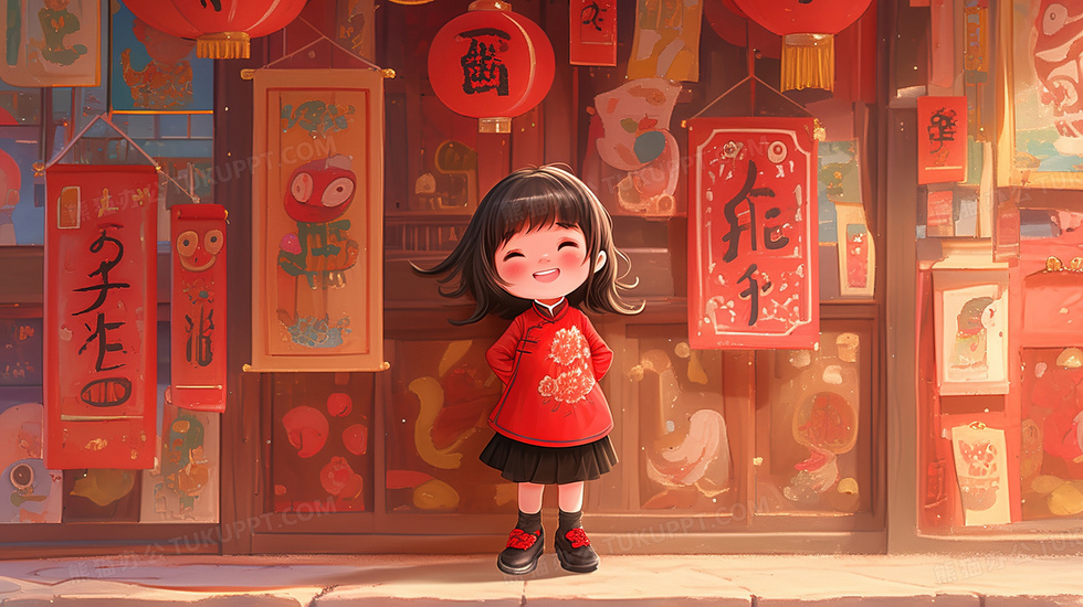 本作品内容为新年春节对联灯笼前的小女孩插画, 格式为 jpg, 大小3 MB, 图片尺寸为2912 x 1632, 源文件无水印, 欢迎使用熊猫办公。 如认为平台内容涉嫌侵权,可通过邮件:tousu@tukuppt.com提出书面通知,我们将及时处理。
