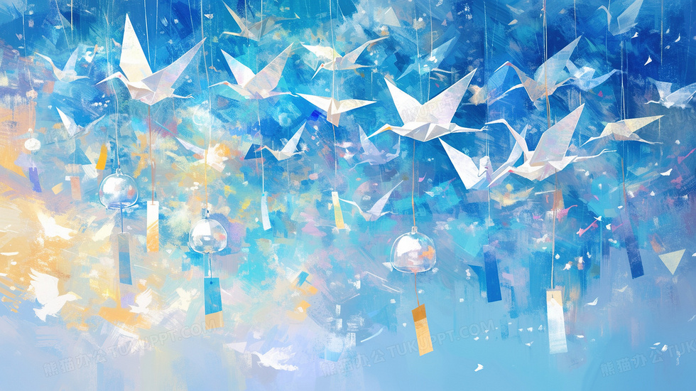本作品内容为唯美梦幻治愈千纸鹤风铃插画, 格式为 jpg, 大小4 MB, 图片尺寸为2912 x 1632, 源文件无水印, 欢迎使用熊猫办公。 如认为平台内容涉嫌侵权,可通过邮件:tousu@tukuppt.com提出书面通知,我们将及时处理。