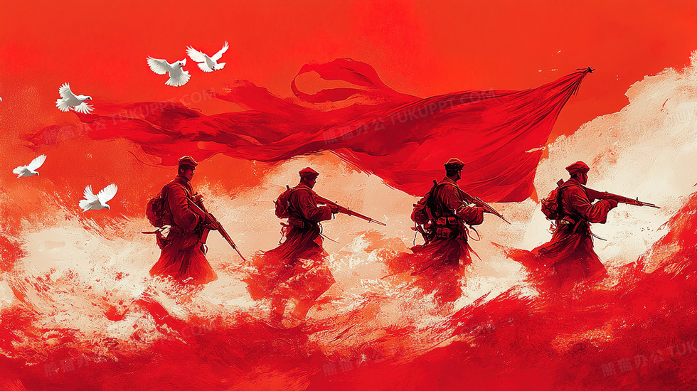 本作品内容为军人红色大气背景, 格式为 jpg, 大小4 MB, 图片尺寸为2912 x 1632, 作品中背景图片无需修改, 源文件无水印,可以直接使用, 欢迎使用熊猫办公。 如认为平台内容涉嫌侵权,可通过邮件:tousu@tukuppt.com提出书面通知,我们将及时处理。