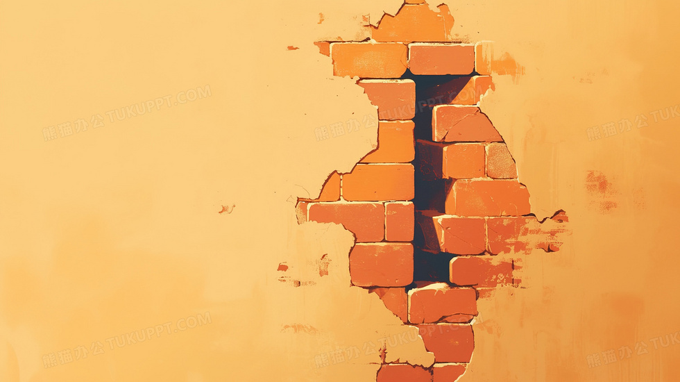 本作品内容为破损老旧效果的砖墙背景, 格式为 jpg, 大小2 MB, 图片尺寸为2912 x 1632, 作品中背景图片无需修改, 源文件无水印,可以直接使用, 欢迎使用熊猫办公。 如认为平台内容涉嫌侵权,可通过邮件:tousu@tukuppt.com提出书面通知,我们将及时处理。