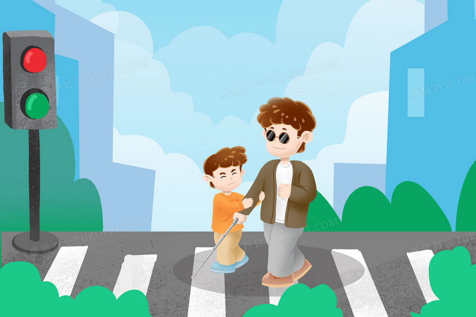 本作品内容为世界助残日扶盲人过马路插画, 格式为 psd, 大小21 MB, 请使用软件PhotoShop(CC)打开, 源文件无水印, 欢迎使用熊猫办公。 如认为平台内容涉嫌侵权,可通过邮件:tousu@tukuppt.com提出书面通知,我们将及时处理。
