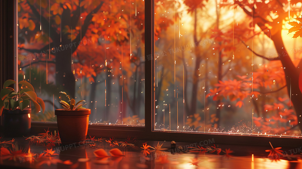 本作品内容为秋季雨天风景枫叶窗台插画, 格式为 jpg, 大小3 MB, 图片尺寸为2912 x 1632, 源文件无水印, 欢迎使用熊猫办公。 如认为平台内容涉嫌侵权,可通过邮件:tousu@tukuppt.com提出书面通知,我们将及时处理。