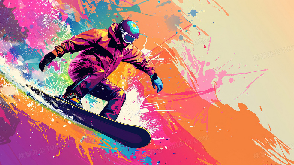 本作品内容为滑雪板运动员动态姿势彩色背景, 格式为 jpg, 大小3 MB, 图片尺寸为2912 x 1632, 作品中背景图片无需修改, 源文件无水印,可以直接使用, 欢迎使用熊猫办公。 如认为平台内容涉嫌侵权,可通过邮件:tousu@tukuppt.com提出书面通知,我们将及时处理。