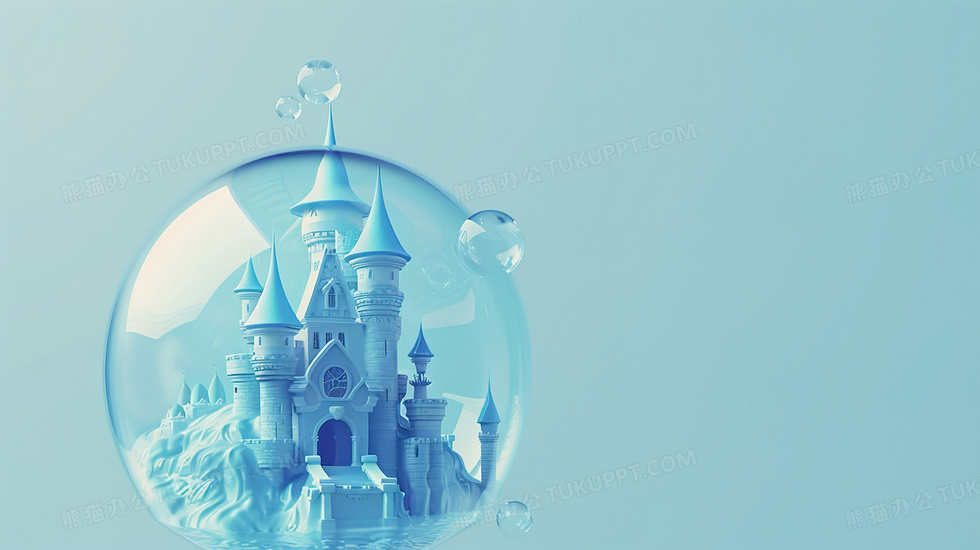 本作品内容为简约浪漫风格气泡中的城堡背景, 格式为 jpg, 大小2 MB, 图片尺寸为2912 x 1632, 作品中背景图片无需修改, 源文件无水印,可以直接使用, 欢迎使用熊猫办公。 如认为平台内容涉嫌侵权,可通过邮件:tousu@tukuppt.com提出书面通知,我们将及时处理。